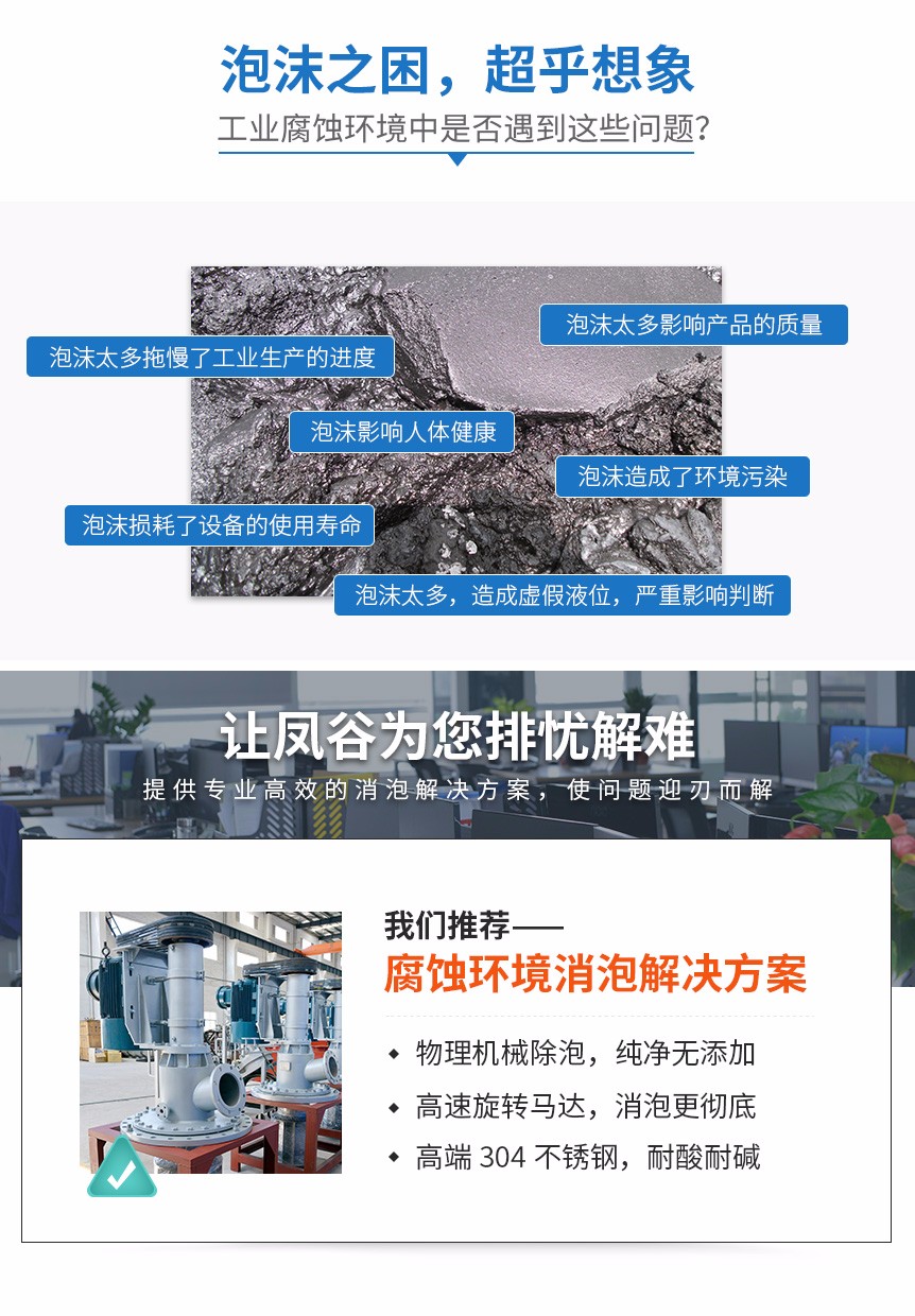 江蘇鳳谷節能科技有限公司是一家“以科技創新為先導、以節能環保為核心”的高新技術企業。公司秉持自主創新、精益求精的理念,專注設計、研發、生產、銷售各類機械式消泡設備,致力于突破更多消泡應用場景。